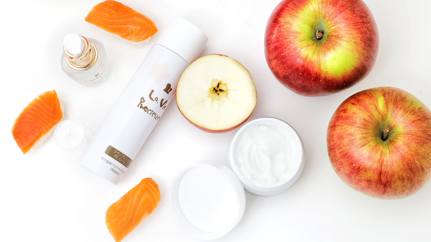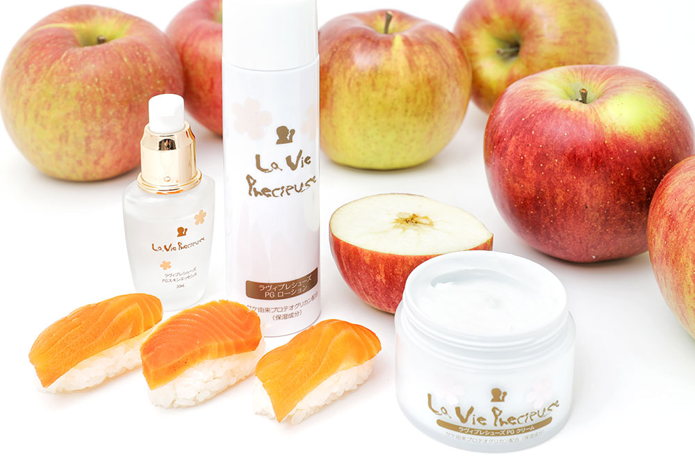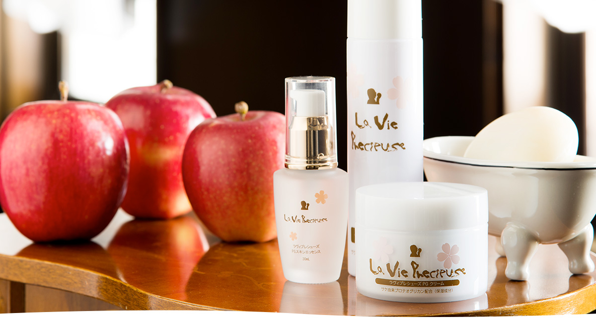 И вот у нас появилась новая косметика La Vie Precieuse ("Драгоценная жизнь") – ее делают на очень маленьком производстве в японской глубинке, в Аомори, на основе местного протеогликана и яблочной вытяжки.